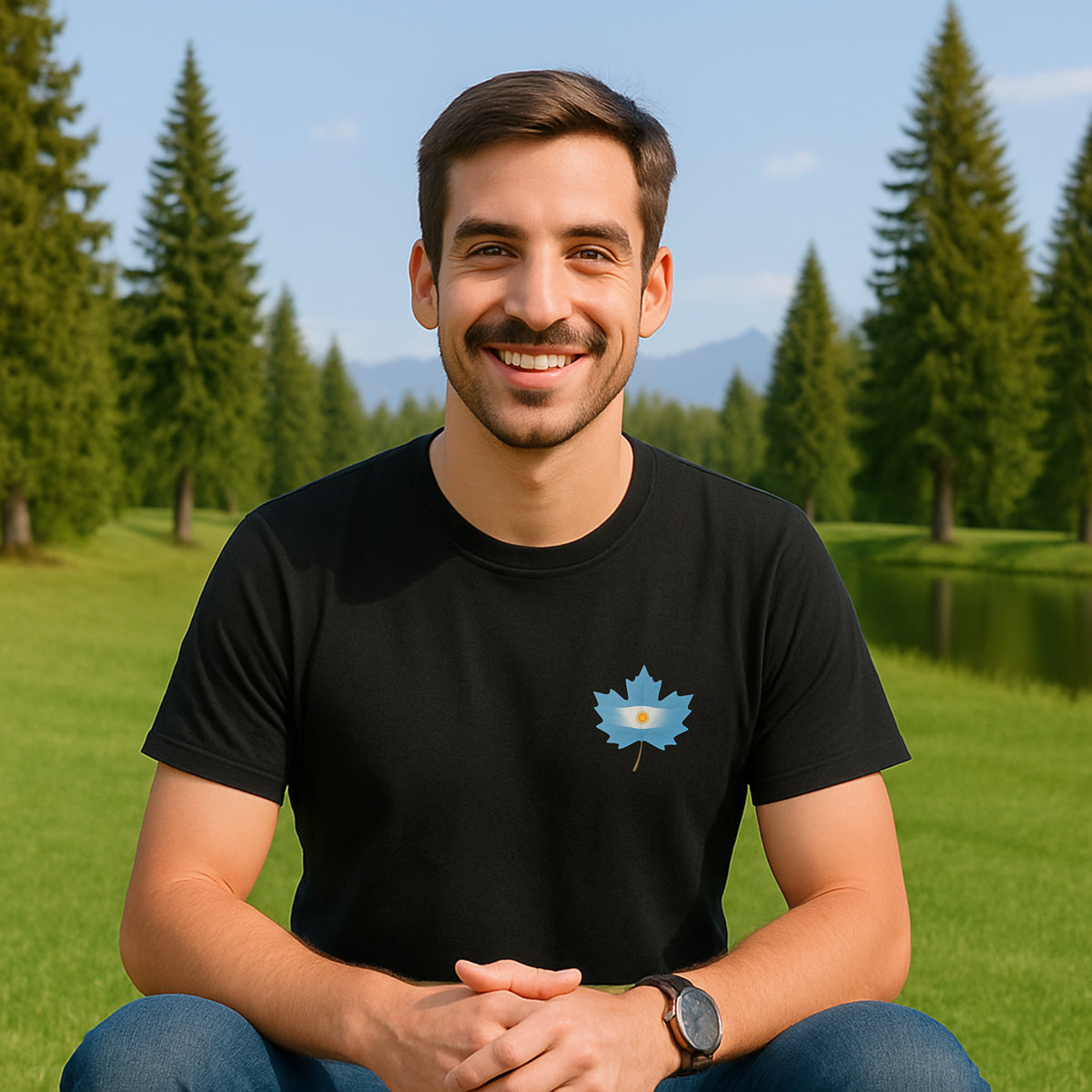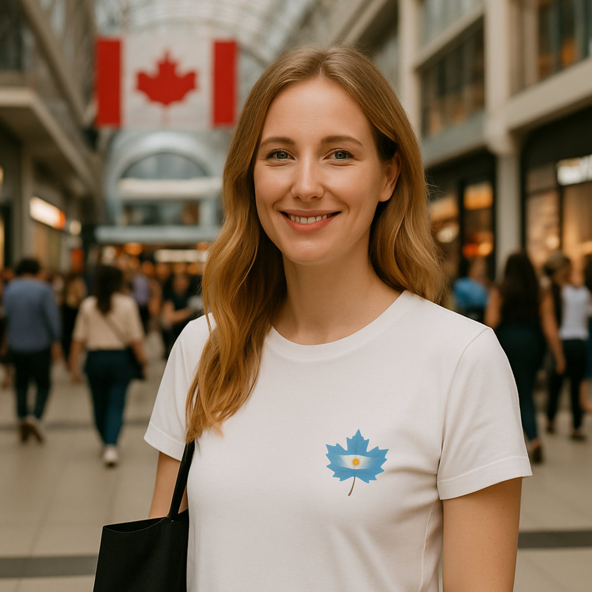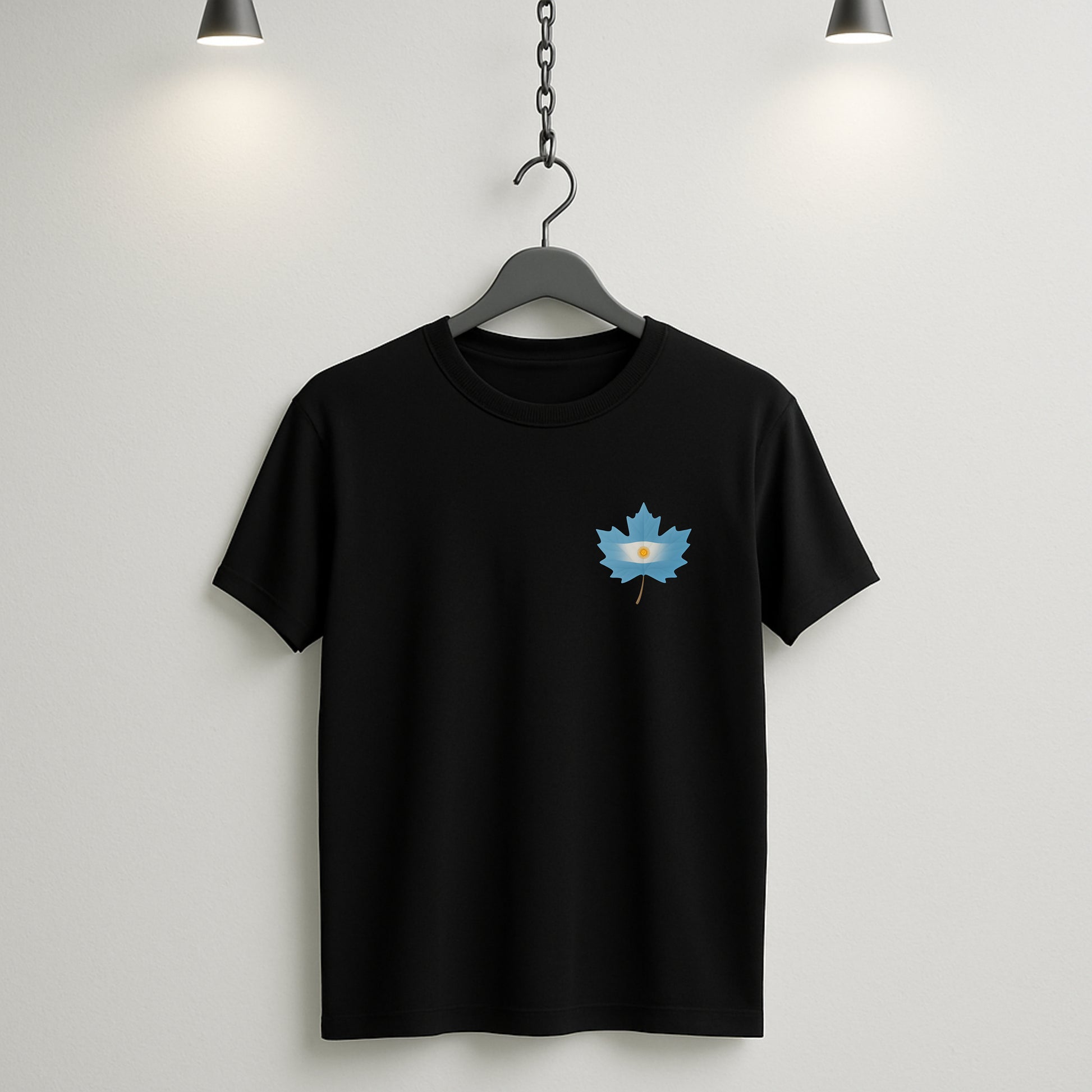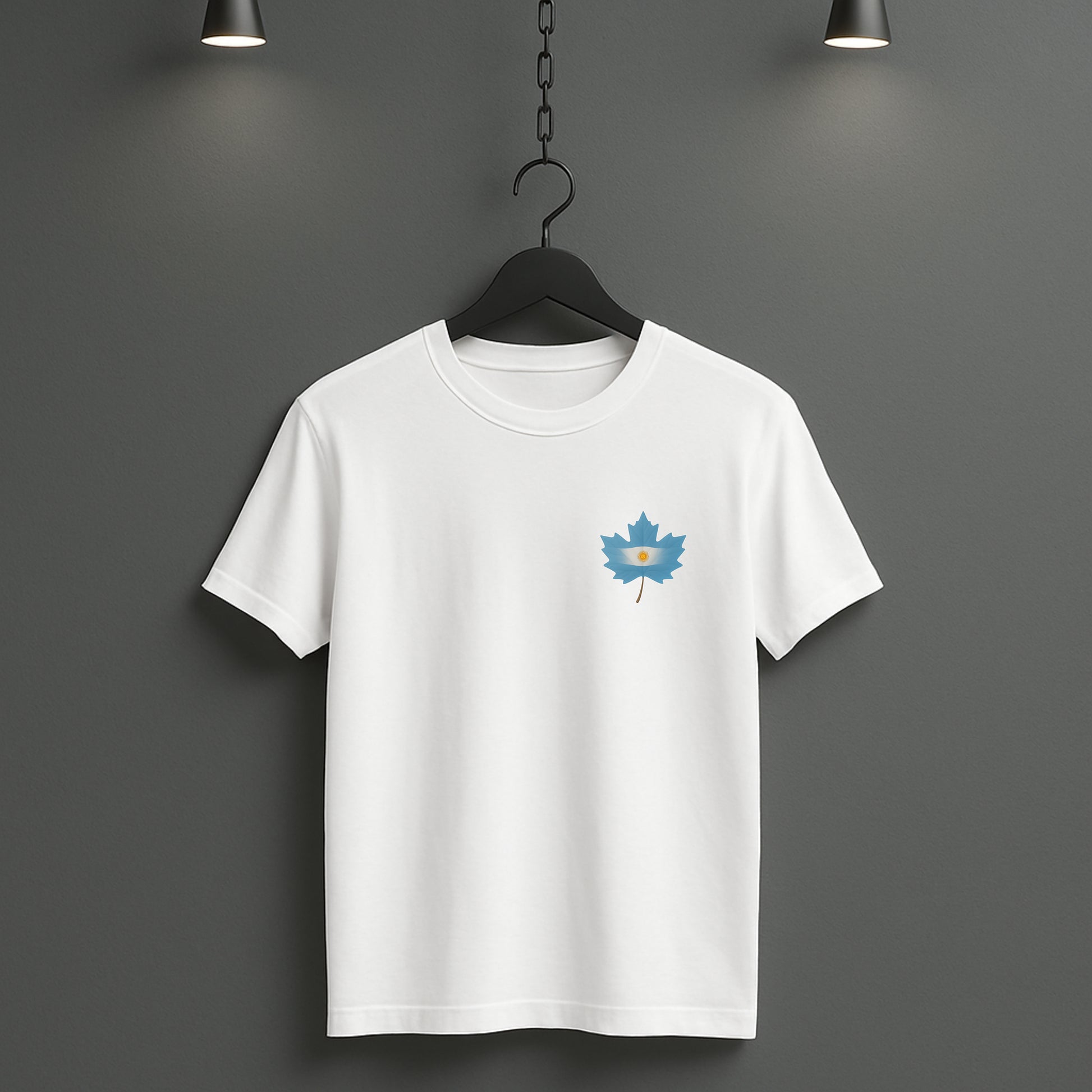 This design is a tribute to resilience, passion, and belonging—where the sky blue and white of Argentina's flag embrace the strength of the maple leaf.