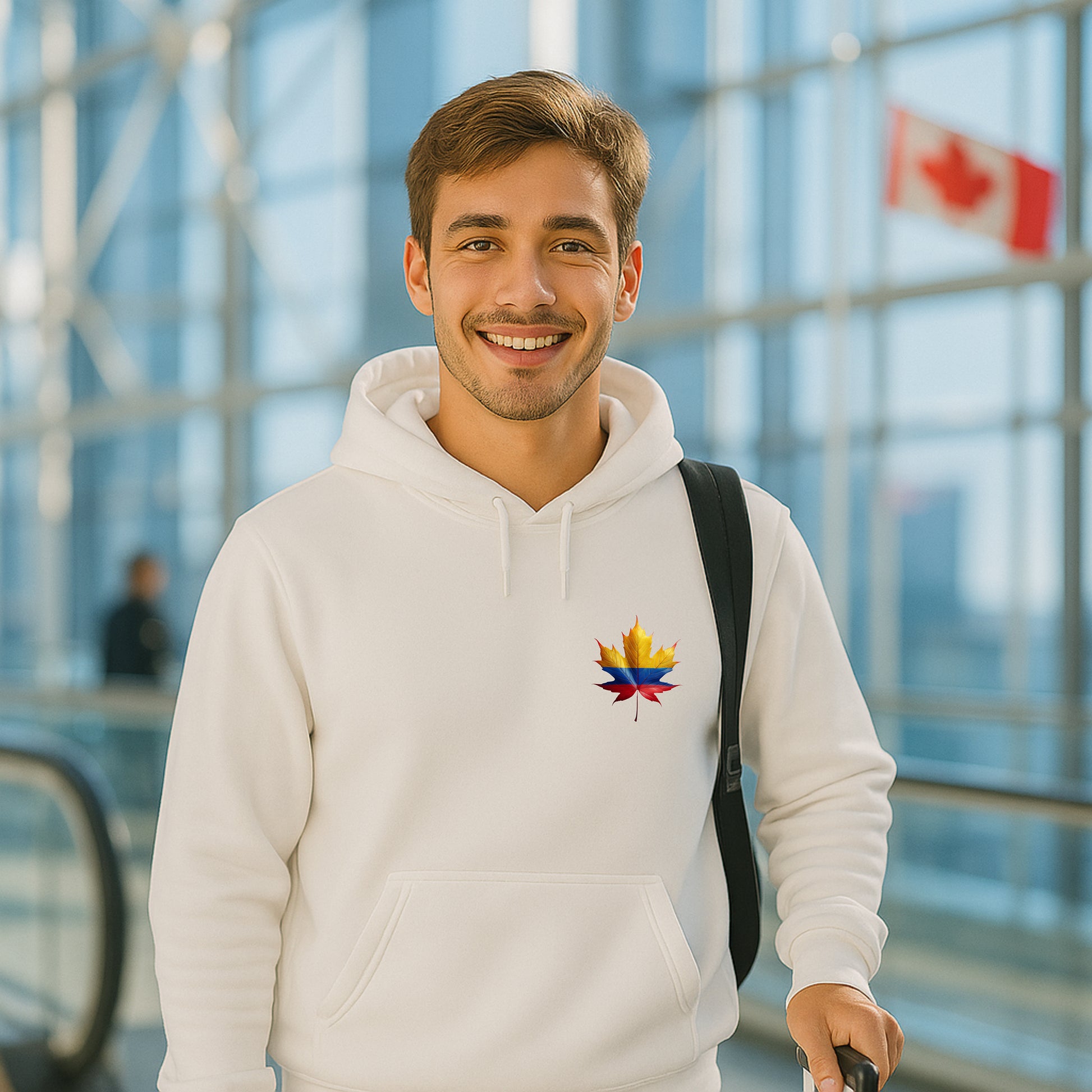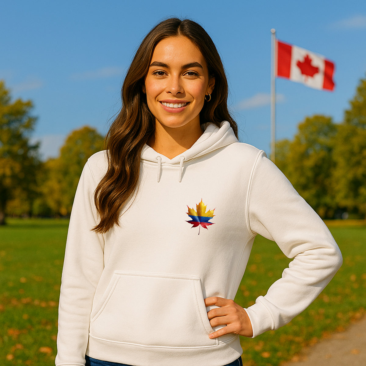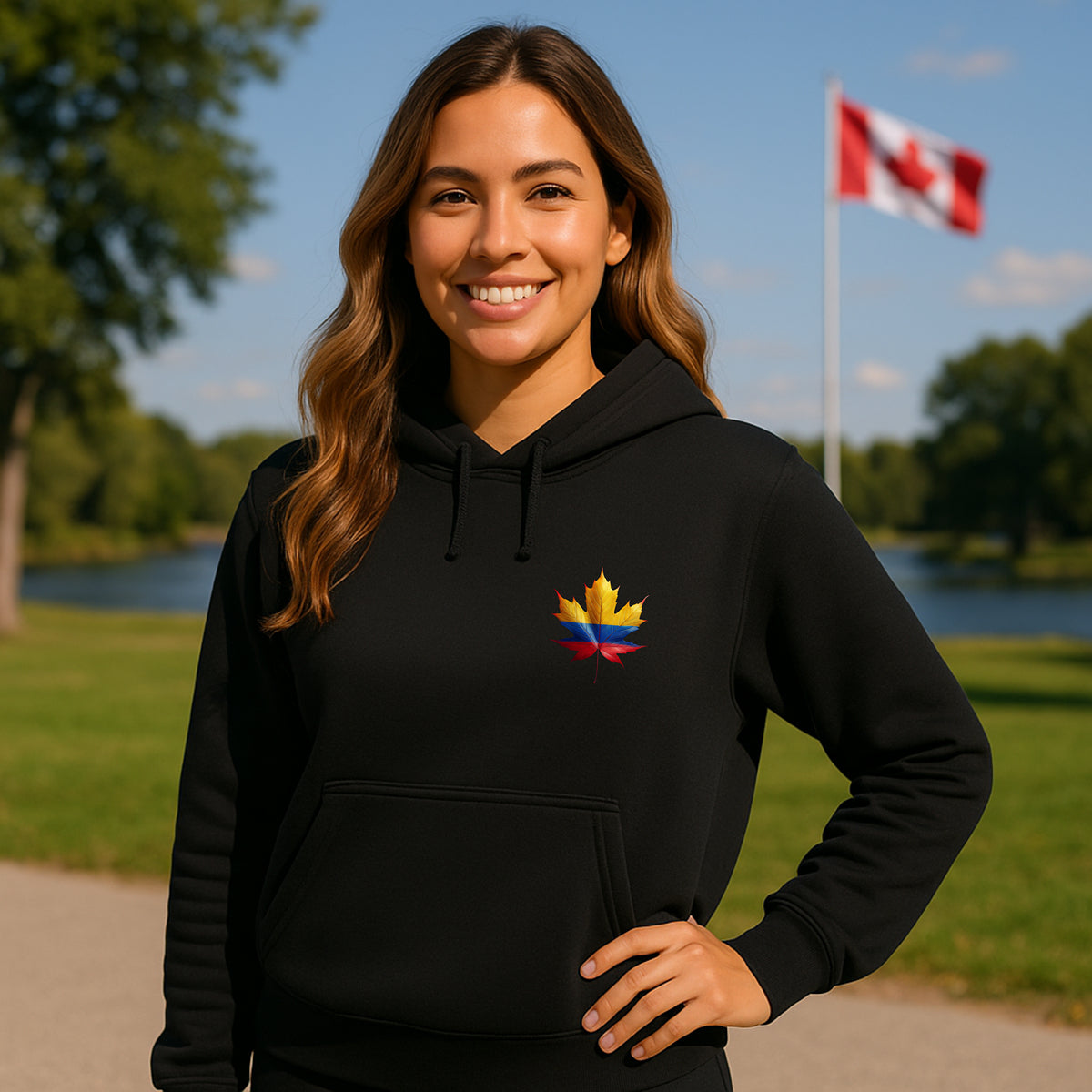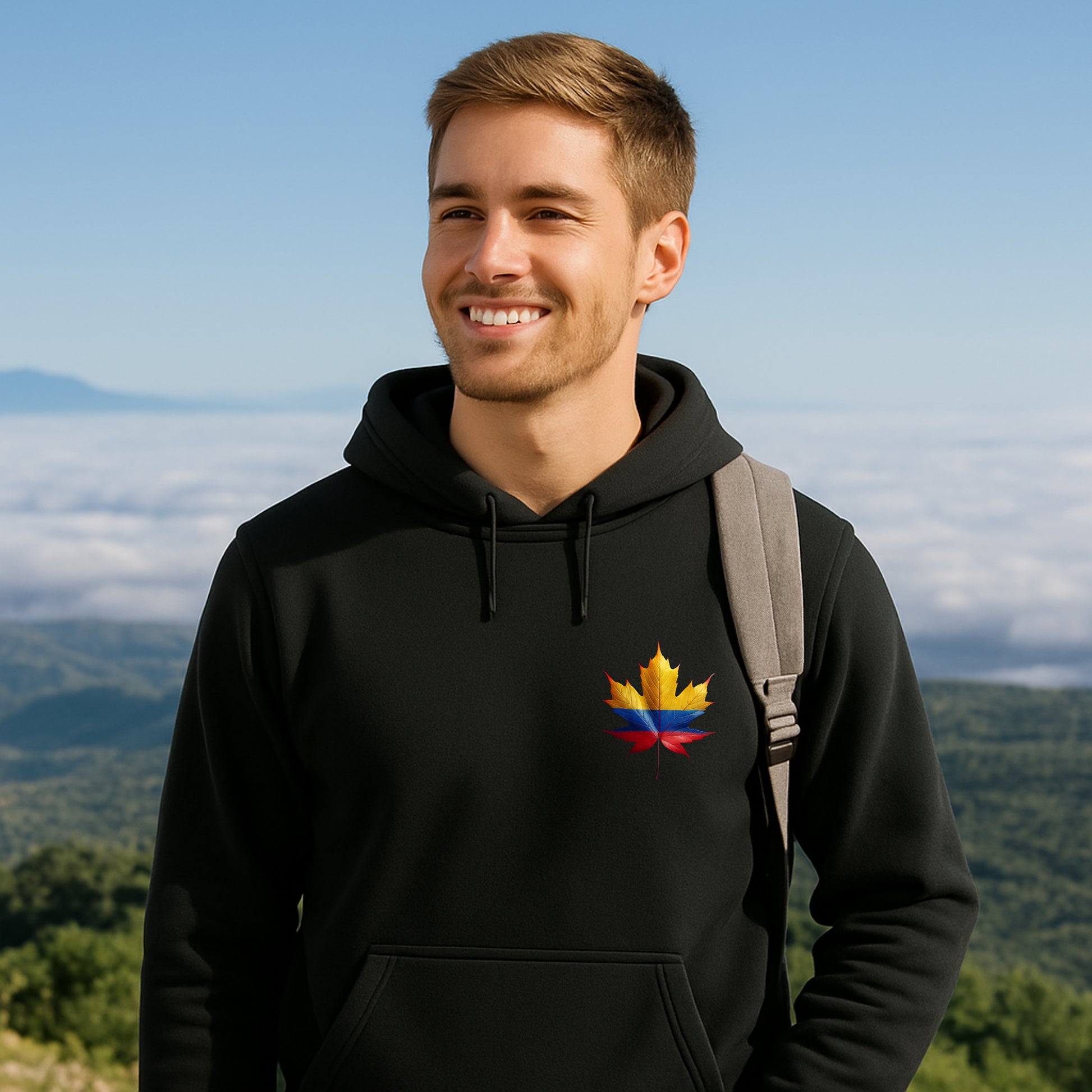 Show this exclusive design that blends the Canadian maple leaf with the vibrant Colombian flag's colours on the front, while the back says it all: "Colombian blood, Canadian heart".