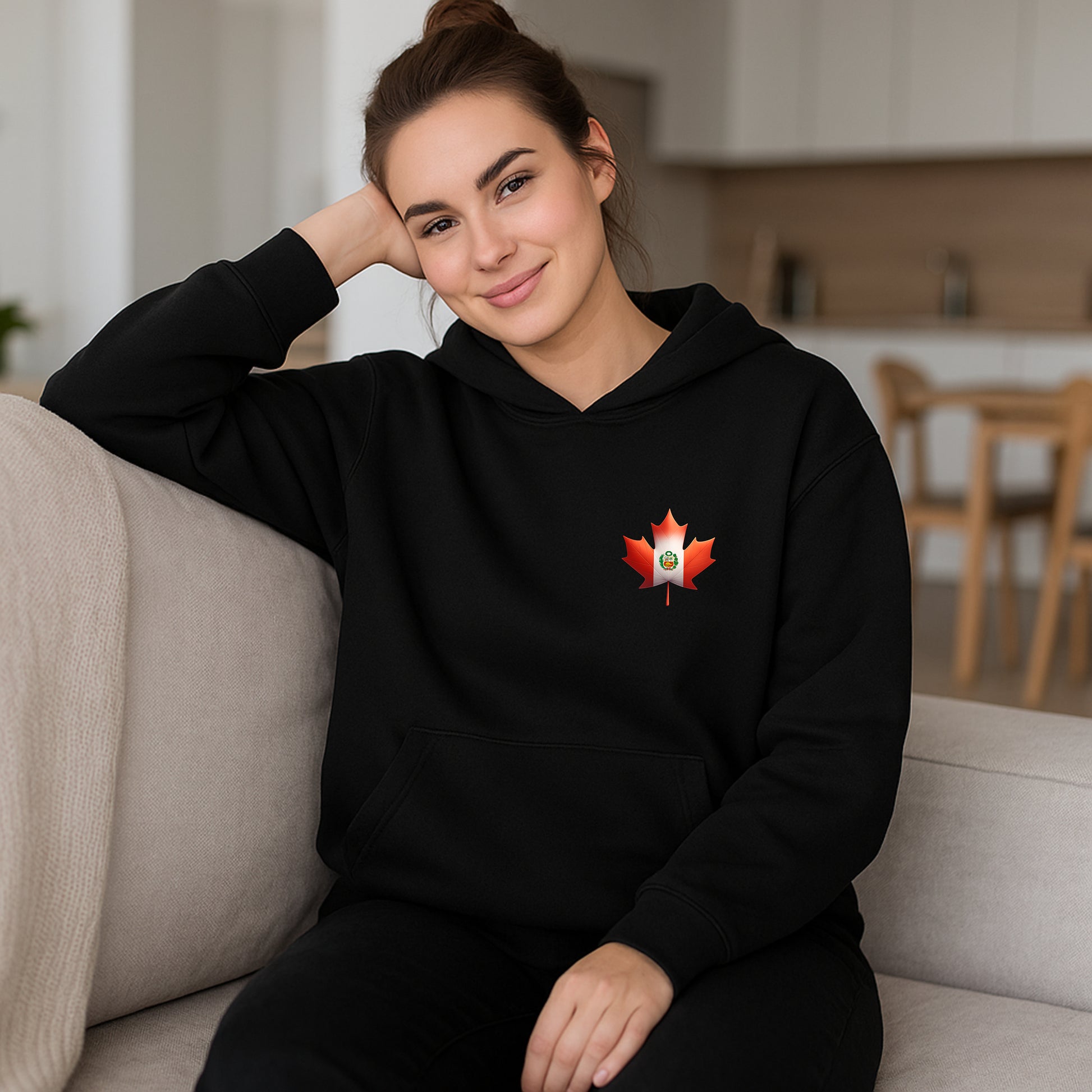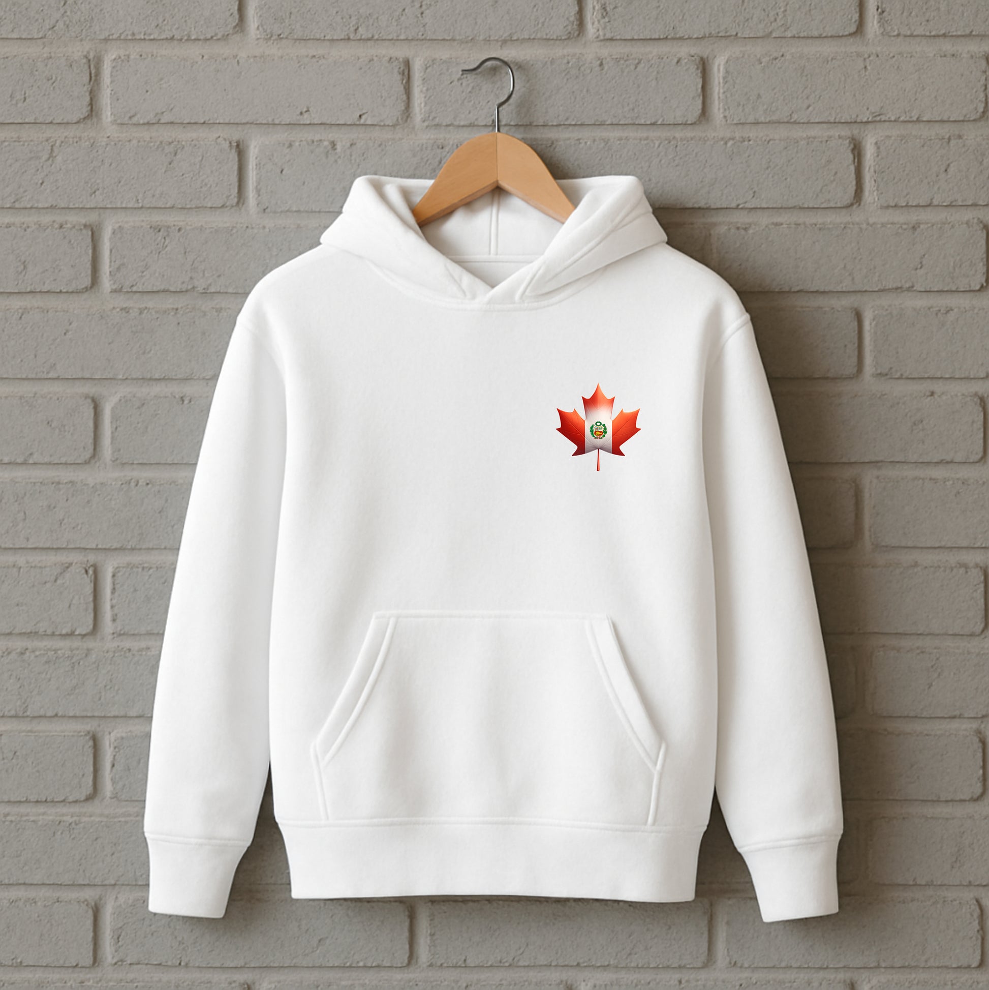 Front: Maple leaf design blending Peru and Canada