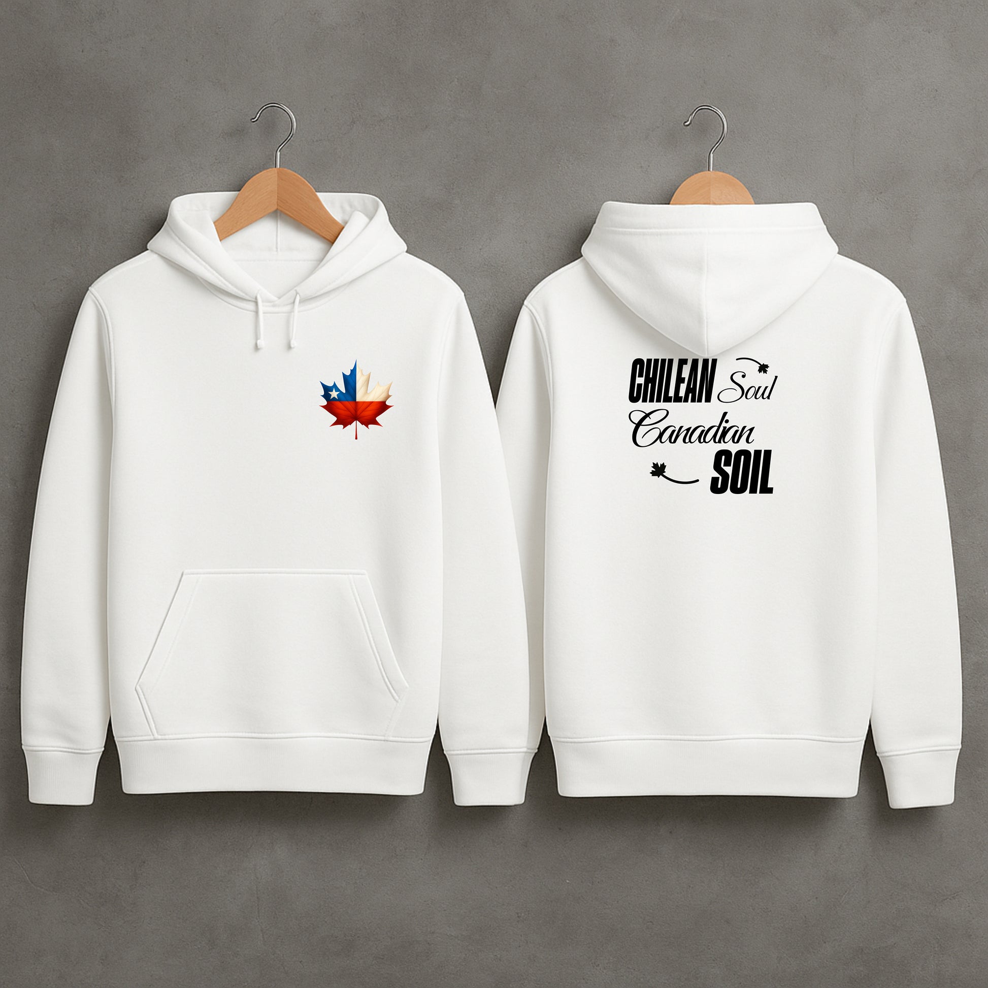 This design is a tribute to resilience, passion, and belonging—where the colours of Chile’s flag embrace the strength of the maple leaf.